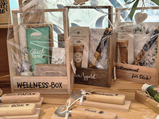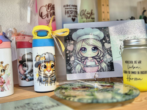 Sublimierte Glasflaschen, Znüniböxli, Solarlaternen