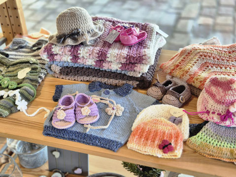 Geschtricktes wie Mützen, Stirnband, Handschuhe, Finkli